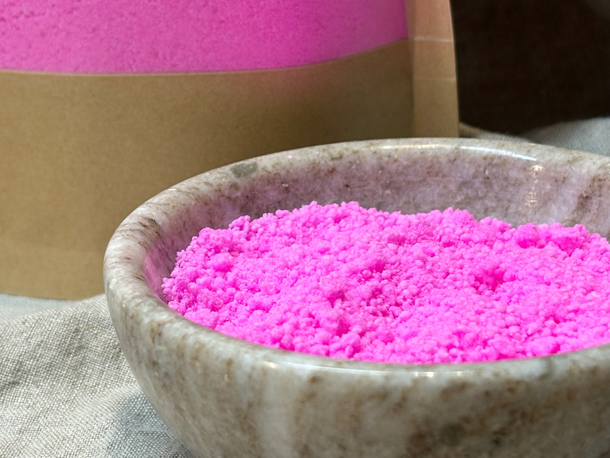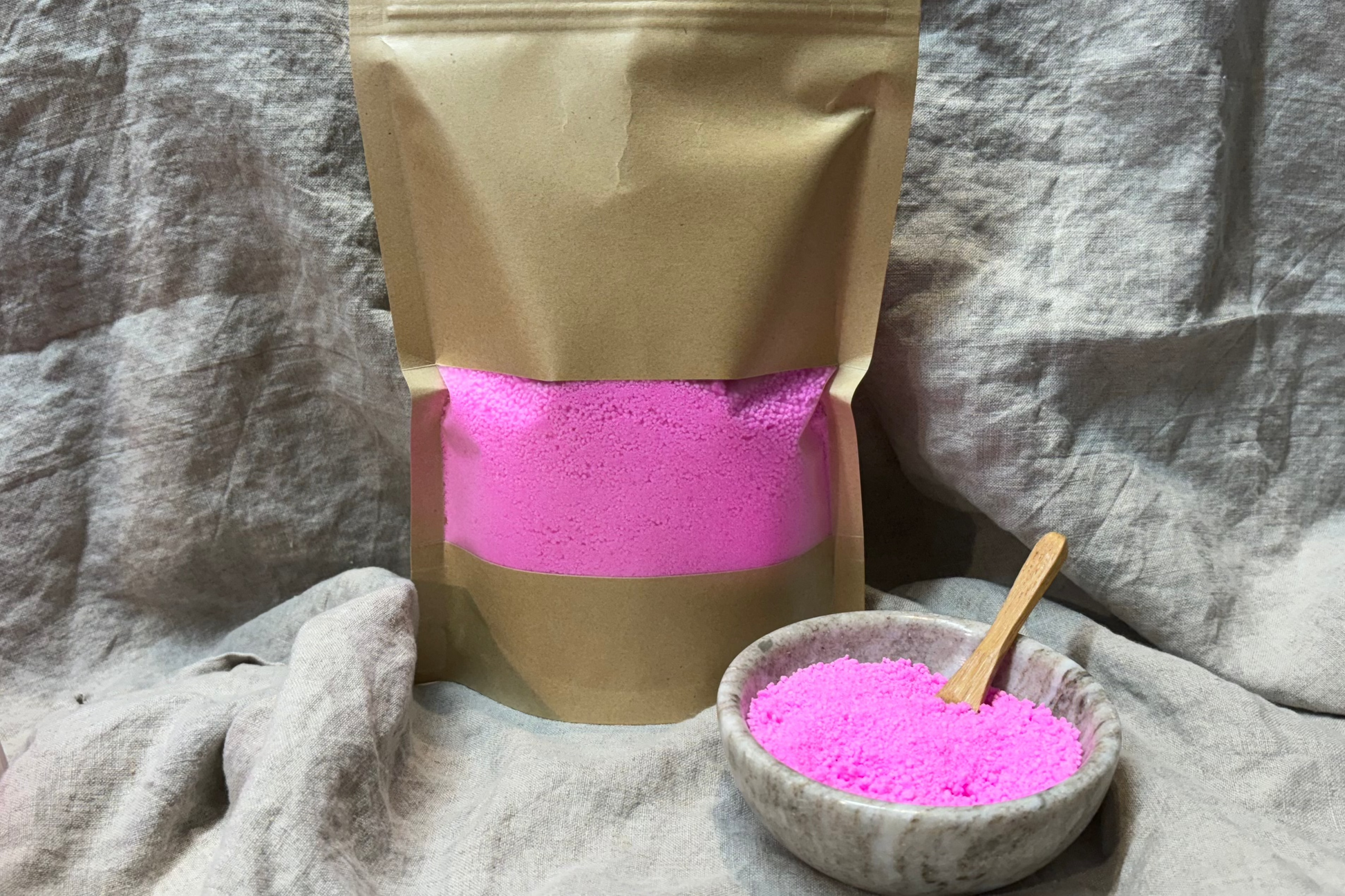 Posen inneholder en halv kilo, som tilsvarer ca 3,5 store badebomber, men her kan man porsjonere som man ønsker. Og også til mindre kar/baljer/fotbad.